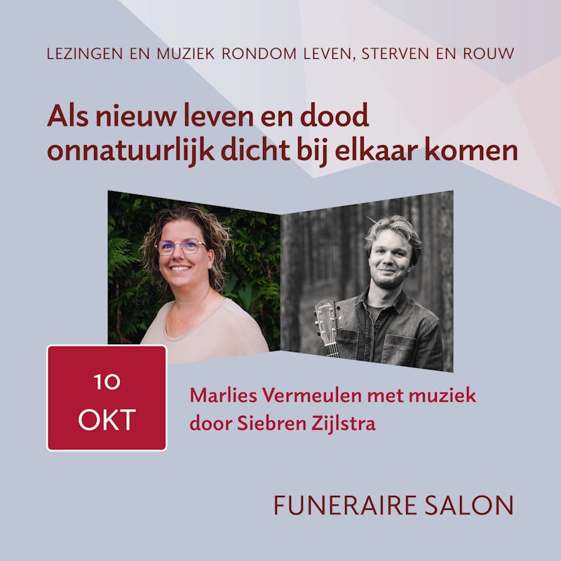 Vanaf donderdag 10 oktober organiseert Tumulus uitvaart voor het seizoen 2024/2025 weer een serie Funeraire salons. De Funeraire salon biedt geïnteresseerden verhalen van bijzondere gastsprekers op het gebied van leven, rouw en verlies, altijd omlijst met prachtige muziek. Het zijn avonden die ruimte bieden voor vragen en eigen ervaringen. Met de Funeraire salon wil Tumulus uitvaart thema’s rond de dood bespreekbaar maken en laagdrempelig informatie geven.