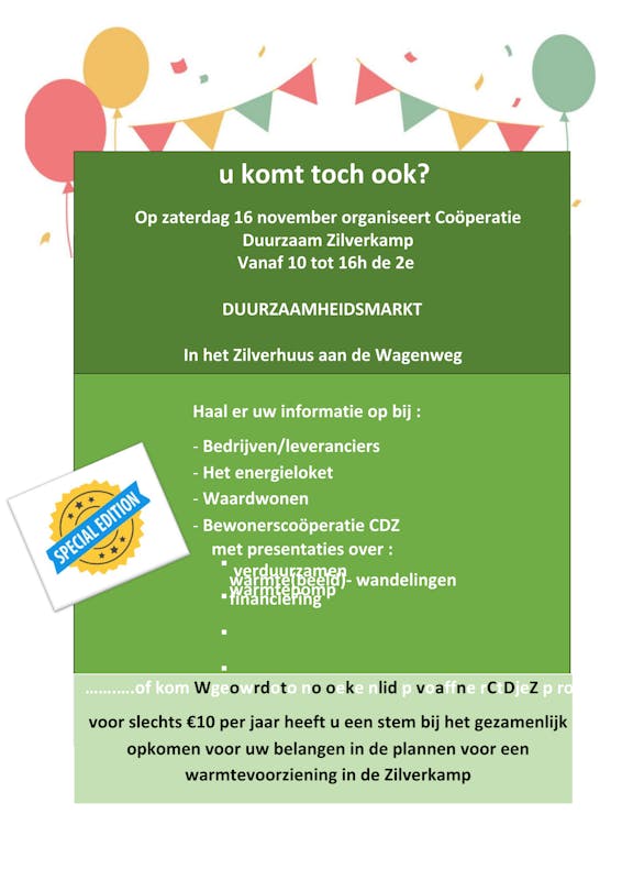 Op zaterdag 16 november Vanaf 10 tot 16h DUURZAAMHEIDSMARKT: