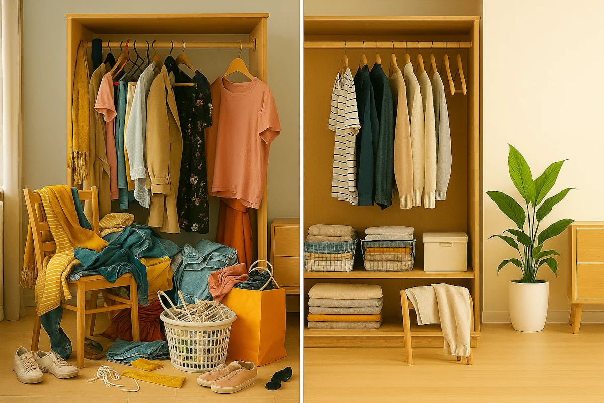 Een kast vol kleding maar tóch niets om aan te trekken? Ontdek hoe je makkelijker keuzes maakt, afscheid neemt van wat niet meer bij je past en weer overzicht creëert.