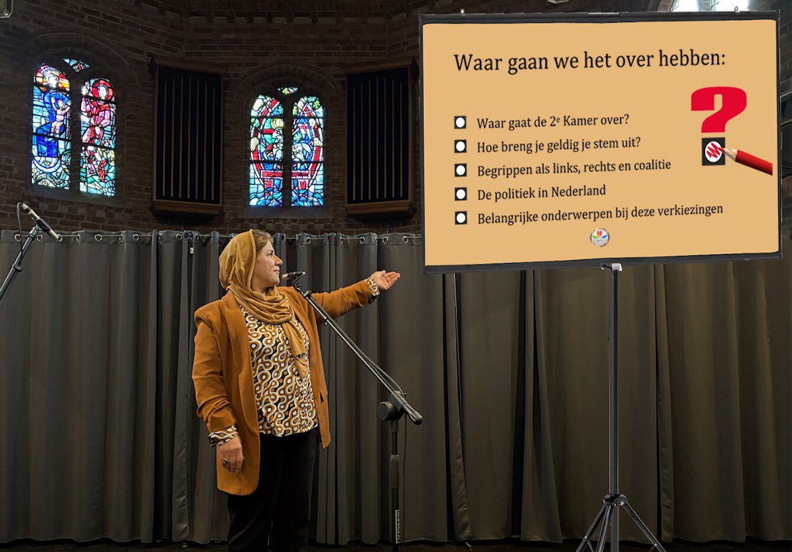 Er is alle ruimte om vragen te stellen. Op de bijeenkomst krijg je geen advies over op wie je moet stemmen. Er zijn wel politieke partijen aanwezig van wie je informatie kunt meenemen.