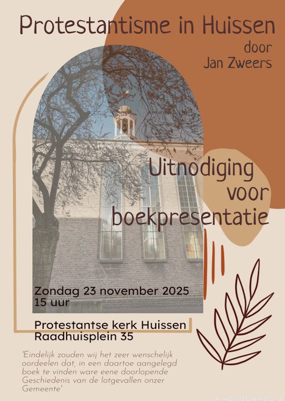 Op zondag 23 november presenteren wij als protestantse kerk van Huissen een kakelvers boek over de geschiedenis van de protestanten in het overwegend katholieke Huissen.