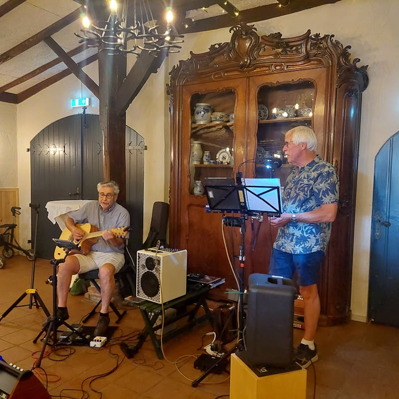 Om tijdens de barbecue een goede sfeer te krijgen, waren Ger en Rob er voor de muzikale noot, zij wisten de stemming er goed in te brengen.