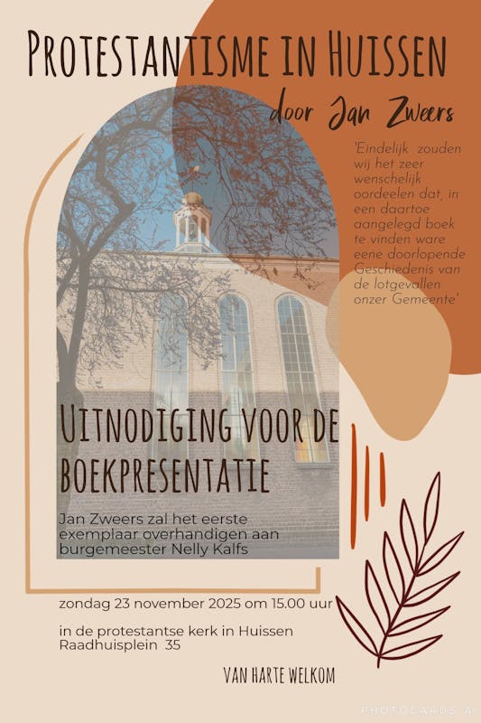 Het begon met een klein groepje, zonder gebouw en zonder predikant. Een groepje dat groter werd en langzamerhand deel ging uitmaken van Huissen. Het zijn verhalen over Huissenaren, geruzie over kerkbanken, het luiden van kerkklokken, ruzies tussen gemeenteleden, eigenwijze predikanten, onderwijzers en gedoe over geld. In het boek komt ook regelmatig wrijving voor tussen katholieken en protestanten…