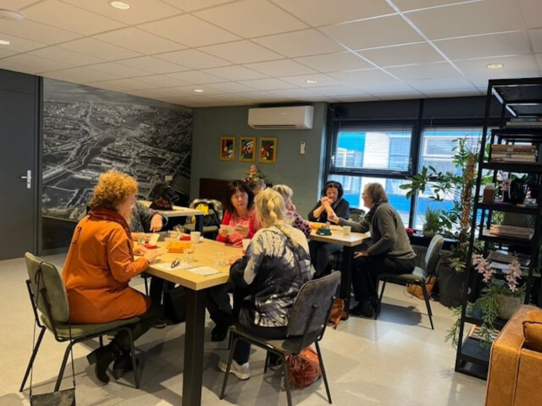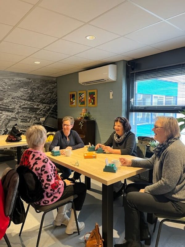 Fransine en Hannie zijn via via bij de bridge ochtend terecht gekomen. Ze vinden het erg gezellig. Inmiddels spelen ze ook allemaal in de B-groep van de Bridgevereniging Cool Down en vinden deze donderdagochtend in het Zilverhuus als een extra oefenmoment, maar zij vinden het ook erg gezellig.