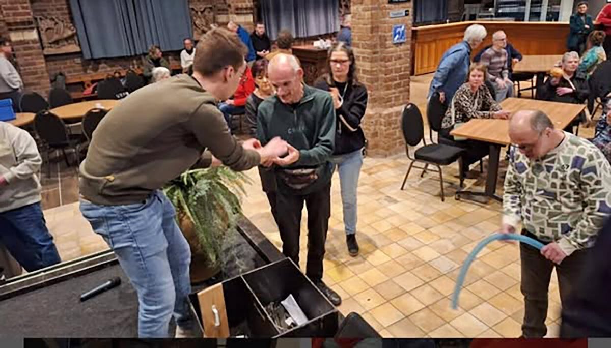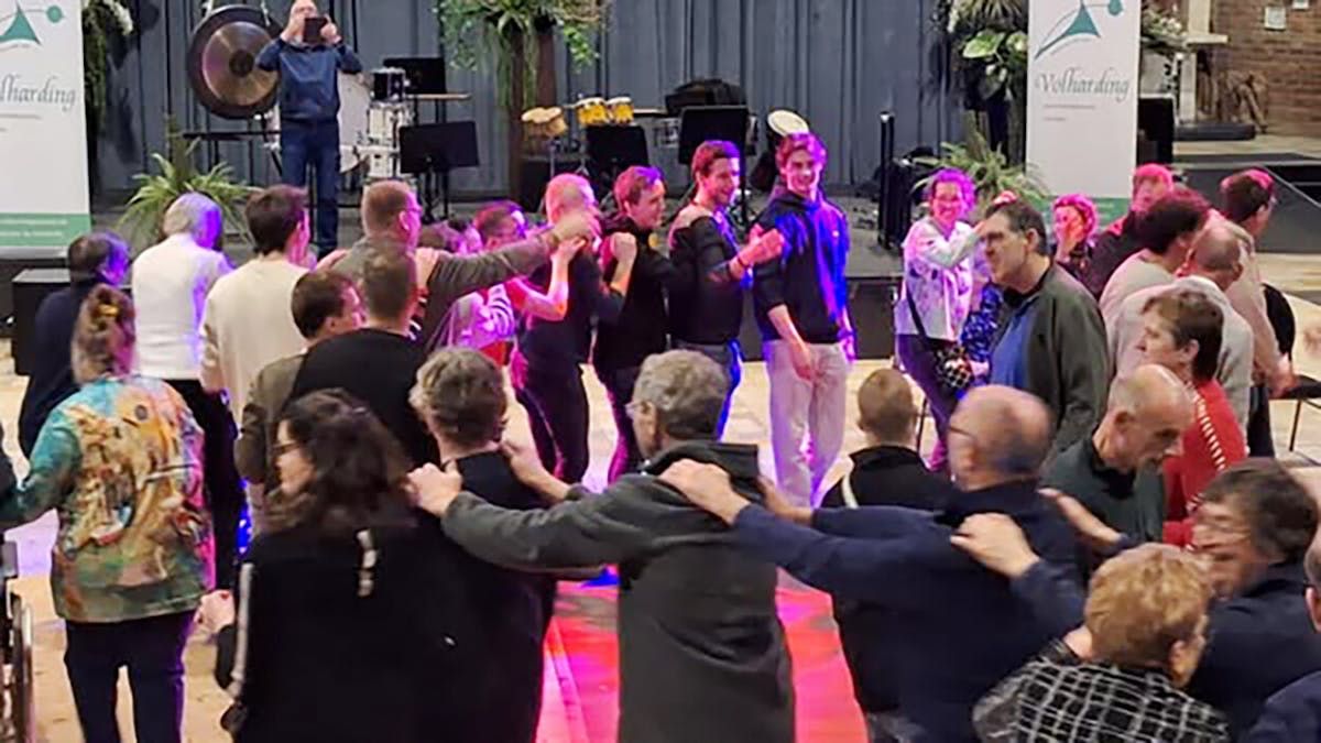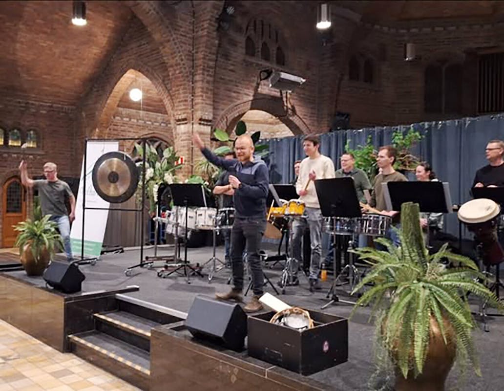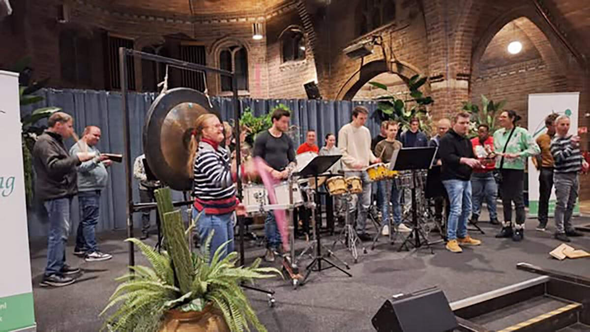 Het meest avontuurlijke deel van de avond kwam toen enkele dappere deelnemers het podium op durfden te komen om met ons mee te spelen. Terwijl ze enthousiast de drumstokken vastpakten, klapte het publiek enthousiast mee op het teken van de dirigent. Het was prachtig om te zien hoe iedereen genoot van het samenspel en de muziek.