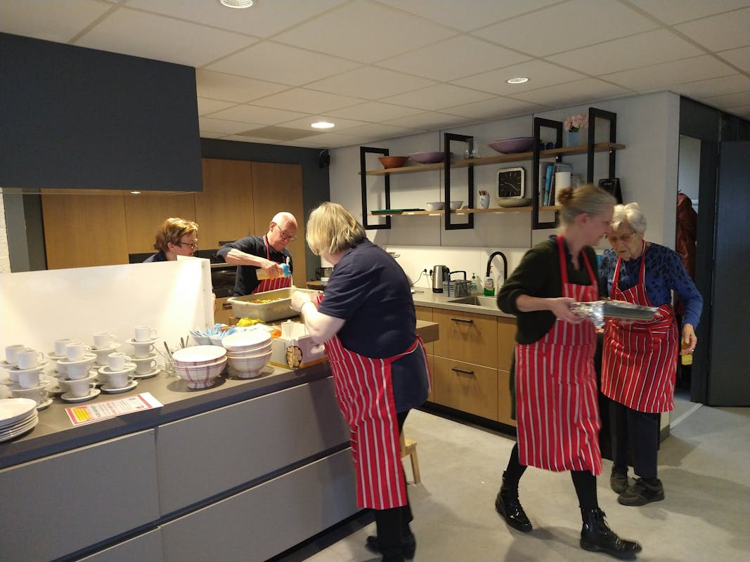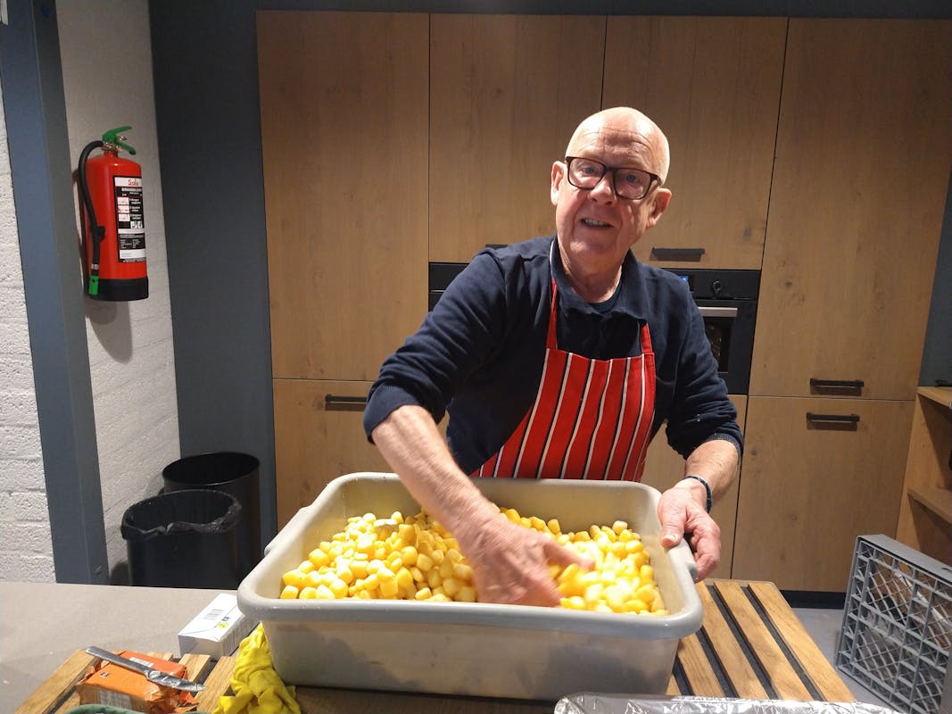 Een heerlijk Paasdiner in het Zilverhuus! Een aantal koks zijn weer bezig om een heerlijke Paasmaaltijd te bereiden voor pakweg 25 tafelgasten. Een lekkere 3-gangen Paasmaaltijd met fijne tafelgenoten, daar kan niets tegenop! Smakelijk eten!!!!