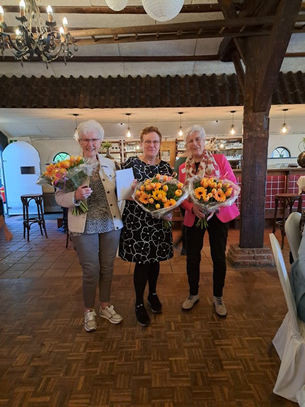 Jannie Damen die 15 jaar vrijwilliger is, was helaas verhinderd, maar ook zij zal uit handen van het bestuur een mooi boeket ontvangen.