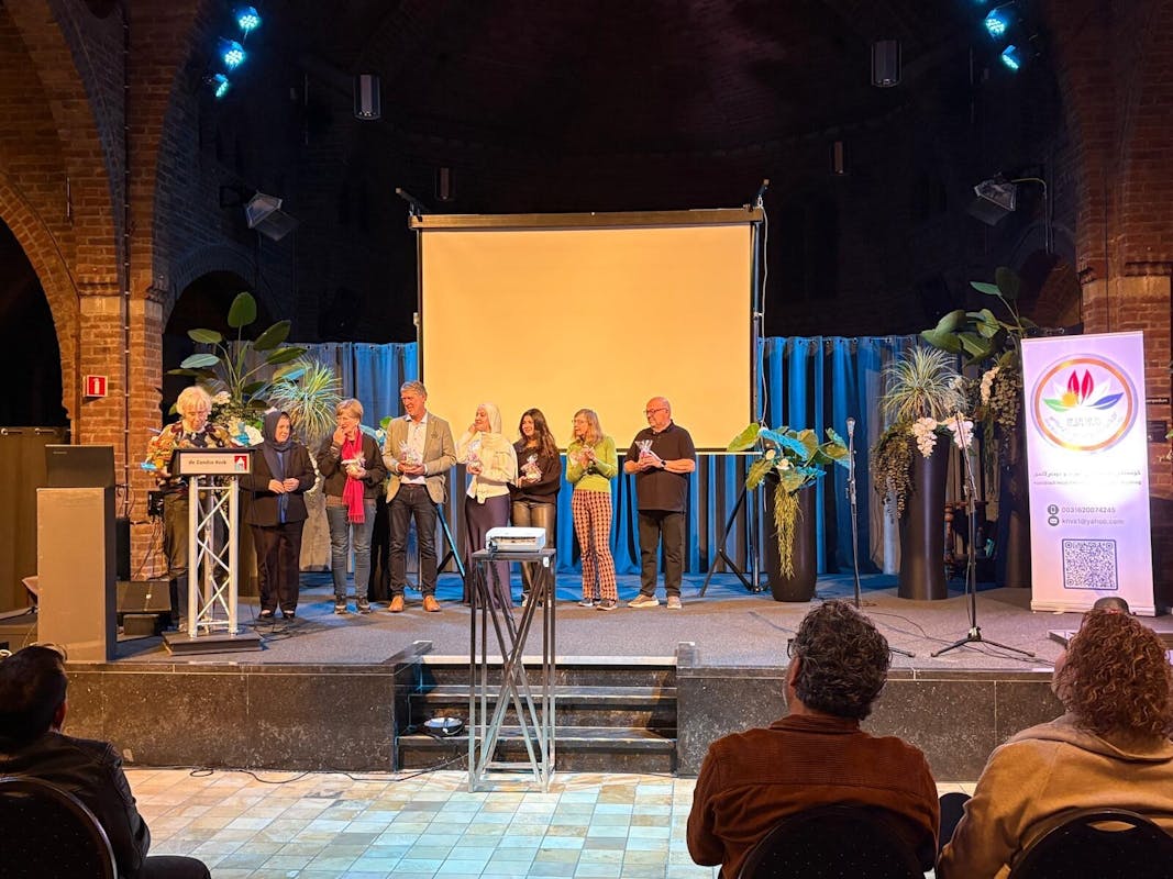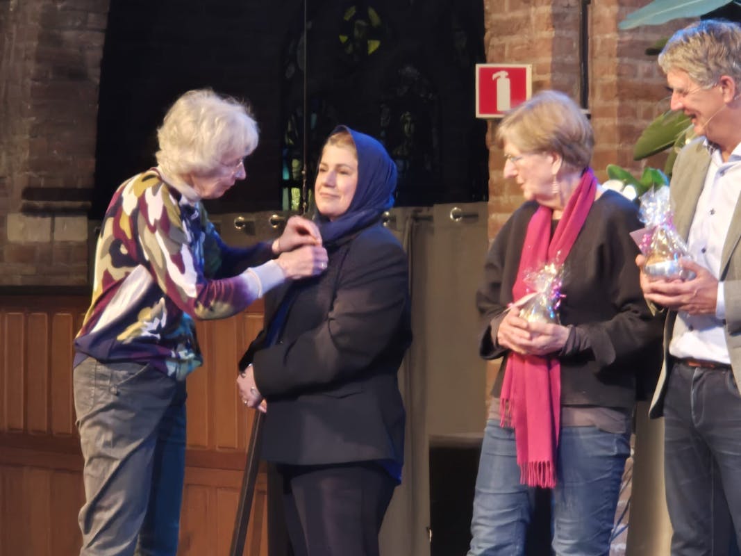 Een foto-impressie van de voorlichtingsavond over de Tweede Kamerverkiezingen voor Nieuwe Nederlanders en andere belangstellenden. Dieman Ahmadi kreeg een schouderklopje van de gemeente opgespeld voor het vele werk dat zij doet. Zij had o.a. deze avond met vele anderen uitstekend georganiseerd en zij zet zich als voorzitter in voor de Koerdisch Nederlandse Vriendschaps Stichting. Zij hoopt dat alle aanwezigen gaan stemmen.