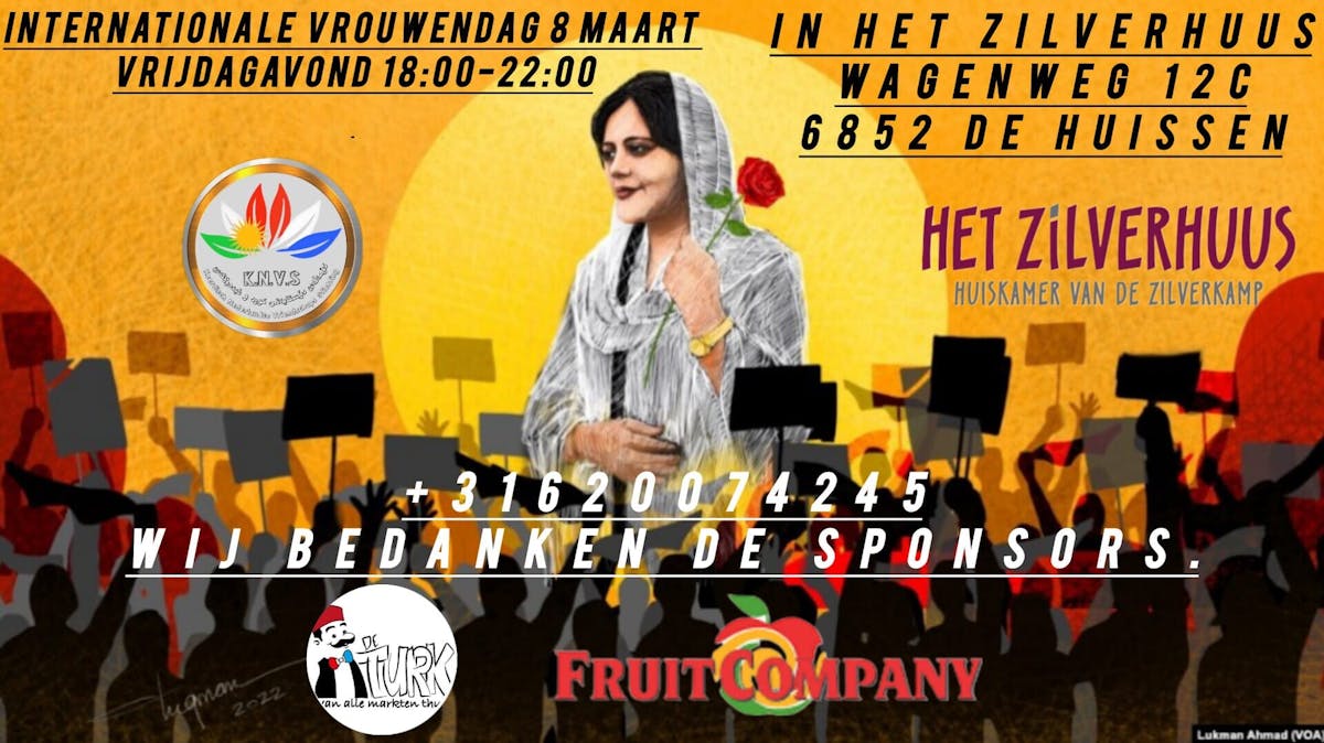 De Koerdisch-Nederlandse Vriendschapsvereniging en Zilverhuus Organisatie) organiseren op vrijdag 8 maart 2024 de viering van internationale vrouwendag.