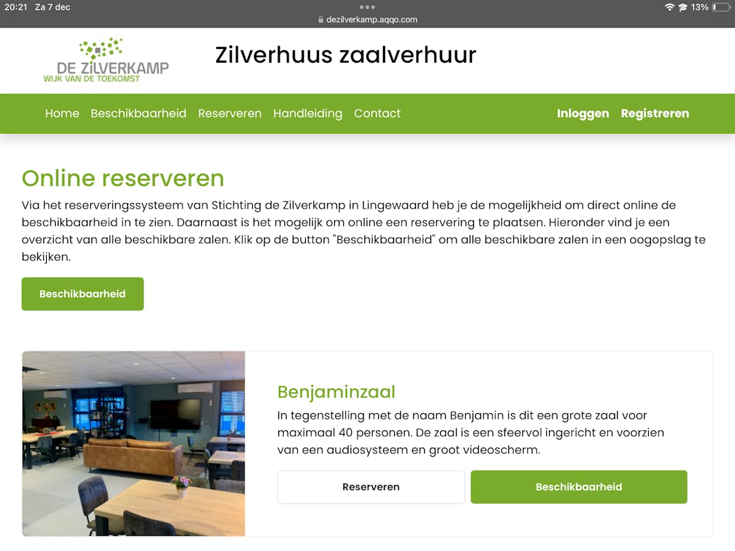 Nieuwe huurders maken een account aan door zich “Registreren”. Na de goedkeuring van de beheerder ben je klaar om in te loggen. Boek eenvoudig jouw gewenste zaal!