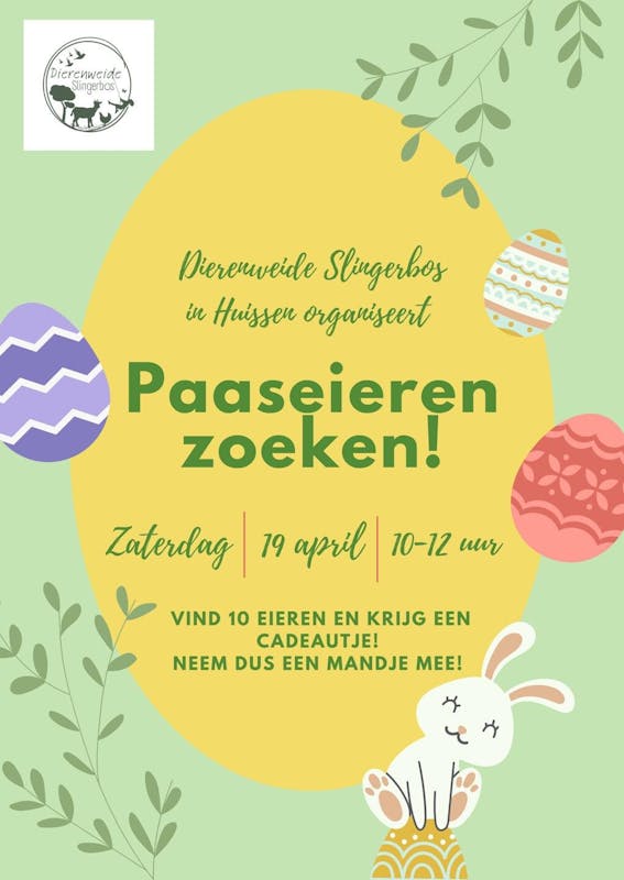 Aankomend Paasweekend viert Dierenweide Slingerbos Pasen op zaterdag 19 april. Tussen 10.00 uur en 12.00 uur is het tijd voor onze jaarlijkse traditie: paaseieren zoeken!