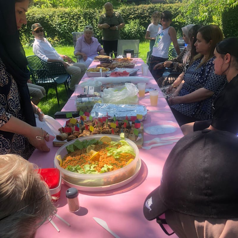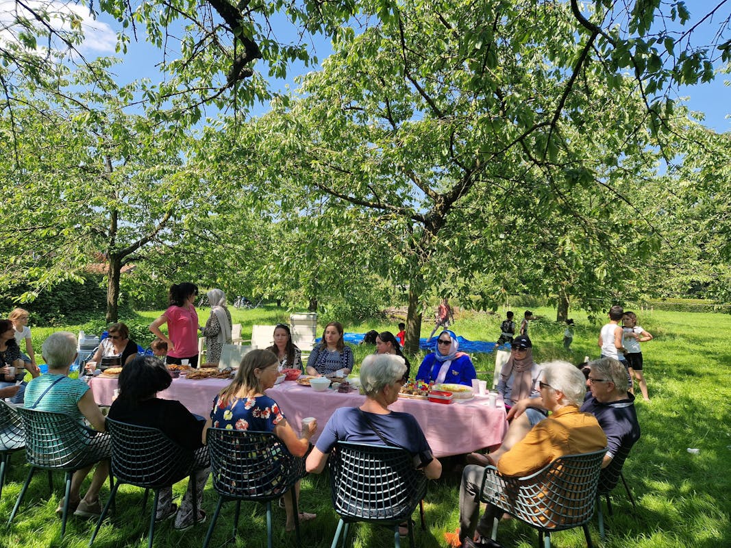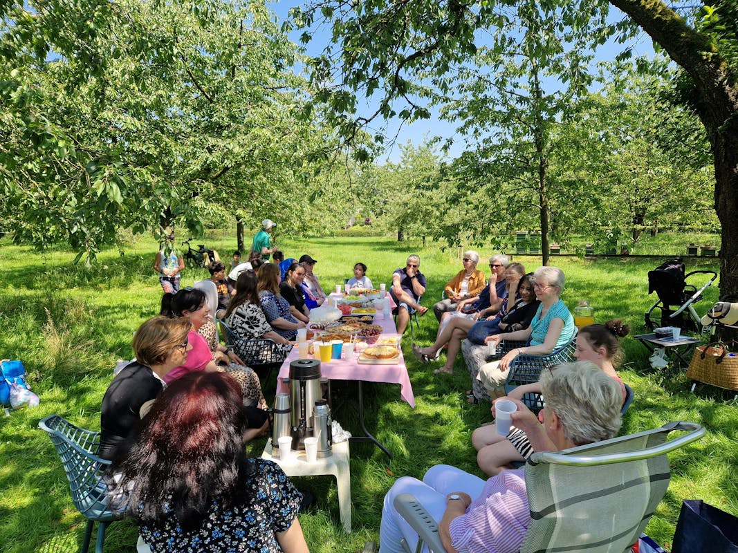 Op 26 juni, een zonnige woensdagmiddag, hielden Lingetalent en de Koerdisch Nederlandse Vriendschapsstichting hun jaarlijkse picknick. We waren te gast in de boomgaard van ???? De lange tafel stond vol met heerlijke hapjes, door vrouwen uit allerlei landen gemaakt. Salades, hartige en zoete taarten, zelfgebakken vruchtenbrood, alles smaakte prima. De kinderen kregen uitleg over de bomen, planten en bijeen in de boomgaard en de maaltijd werd afgesloten met een dans op Koerdische muziek. Al met al een geslaagde middag!
