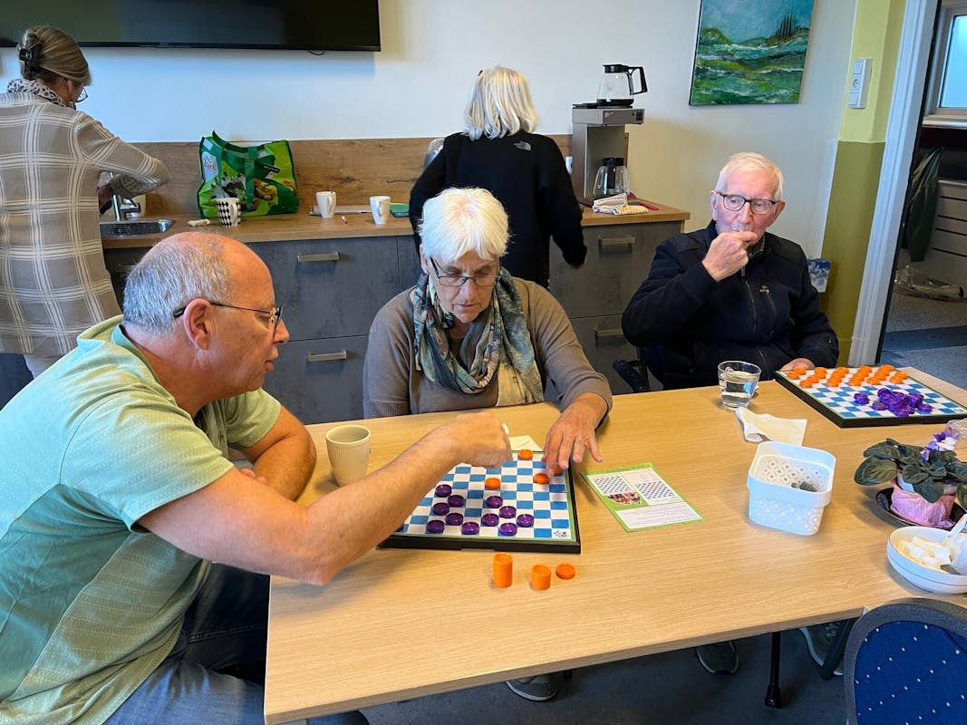 Op maandag 29 september was het feest in de Zandse Huiskamer. Niet alleen was het Huissense kermis maar was onze wekelijkse bijeenkomst ook gericht op het teken van elkaar ontmoeten. De Zandse Huiskamer werd hierin financieel ondersteund door de Stichting Welzijn Lingewaard en had van tevoren activiteiten in het kader van de Week van de Ontmoeting. Het was een fantastische ochtend. Wij zijn er in geslaagd onze bezoekers op een andere, lees sportieve manier, met elkaar kennis te laten maken. Naast de bordspellen zoals Mens Erger je niet en Rummikub waren er bezoekers actief in een dam simulaan tegen dam coryfee Jos Lamers. Verder werd er volop gesjoeld. Een 89-jarige ging er, na een moedige strijd, uiteindelijk met de winst vandoor. Buiten in de Vliertuin was een groep actief met jeux de boules. De Vliertuin beschikt over een prachtige jeux de boulesbaan die helaas te weinig wordt gebruikt. Ook hier was de spanning te snijden en werd er na een enerverende strijd, nipt gewonnen door de jongere bezoekers. Vreugde en verdriet alom.
