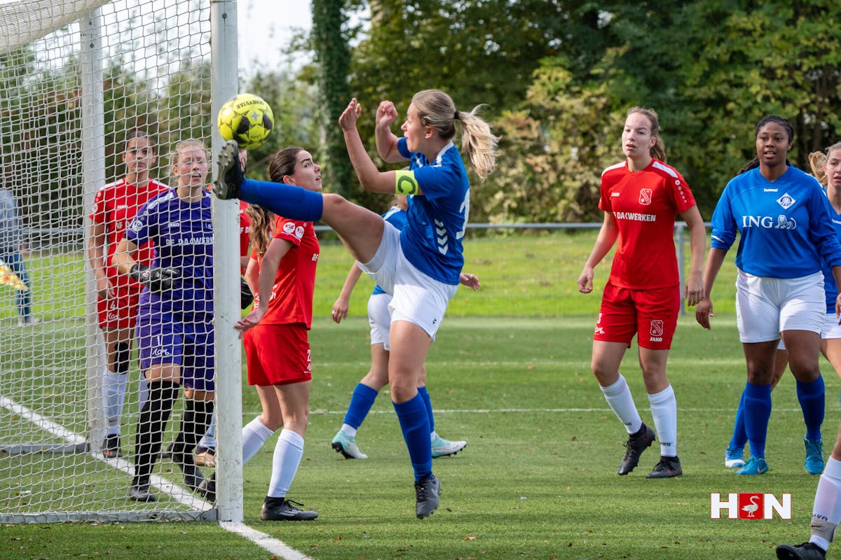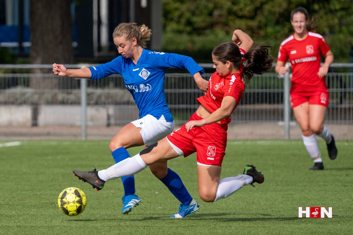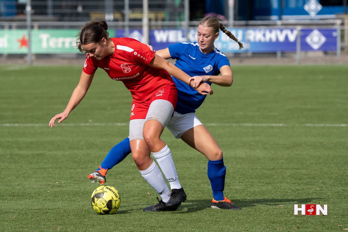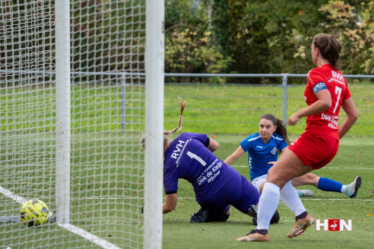 Vanaf het eerste fluitsignaal van scheidsrechter J.H. Schaap was RKHVV de iets sterkere ploeg en wist het team meerdere kansen te creëren om de score te openen. Toch viel de eerste treffer onverwachts aan de andere kant, in de 17e minuut. Een afgeslagen hoekschop van Alverna werd opnieuw ingebracht en bij de tweede paal binnengewerkt. "Een fout in de dekking, maar geen reden tot paniek," aldus trainer Mijland. "Tot dat moment speelden we namelijk prima." De gelijkmaker liet niet lang op zich wachten, want in de 21e minuut bracht rechterspits Nazli Halici de stand weer in evenwicht.